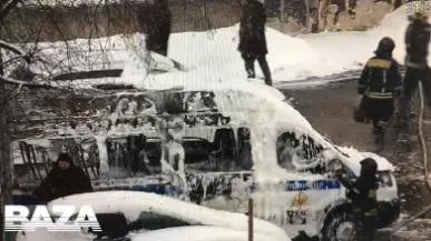 У Москві спалахнуло поліцейське авто / Телеграм Lepra