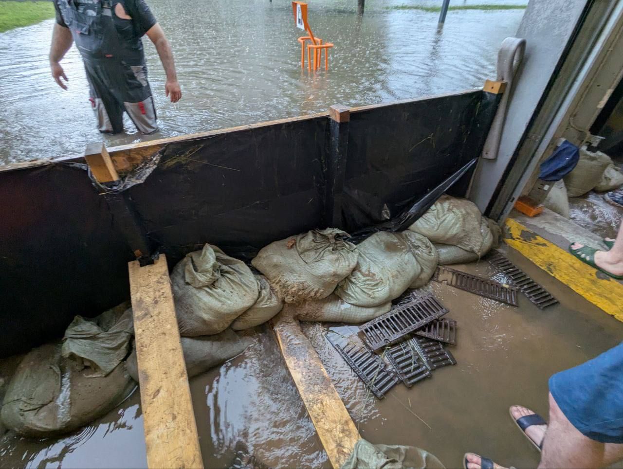 В одному з бізнес-центрів видно, як вода стоїть просто за дверима, вийти вже неможливо.