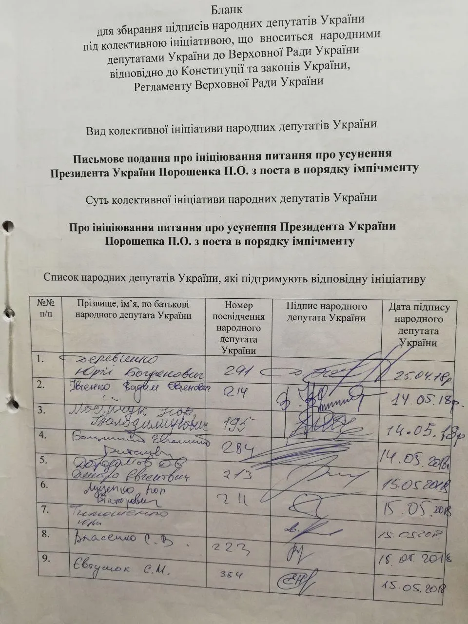 "Минулого року ми почали збирати підписи, щоб це розслідування розпочалось. Це ст. 111 Конституції. Станом на зараз 69 підписів народних депутатів вже є", – підкреслив Дерев’янко.
