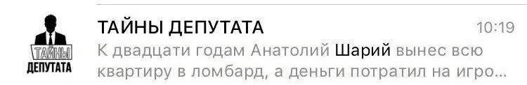 Яскраво побачити, чого варта вся аналітика та "інсайди" в телеграм-каналах, можна спостерігаючи за внутрішніми суперечками користувачів цієї політтехнології. Наприклад, телеграм-канал "Тайны депутата" дуже швидко від підтримки того ж Шарія переключився на кампанію з його дискредитації (зараз пости видалені, але інтернет все пам'ятає).