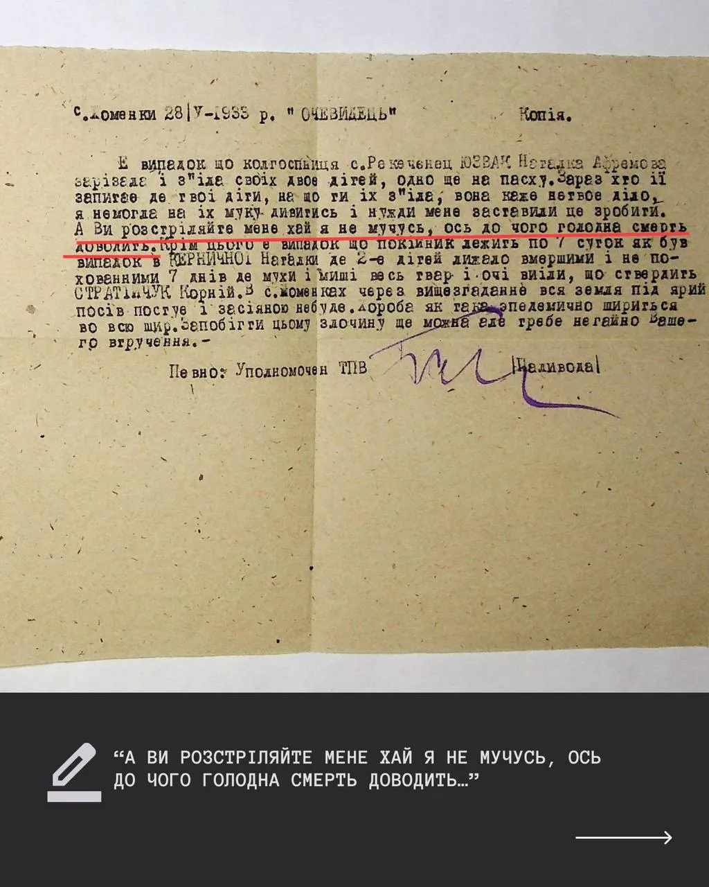Сьогодні ми оприлюднюємо архівні справи фонду 32 "Кримінальні справи судових та позасудових органів" з Галузевого державного архіву МВС України. Ми ставимо за мету показати суспільству та ввести в широкий науковий обіг документи архівів, як головне джерело у дослідженні Голодомору, а також як доказ вчинення злочину геноциду комуністичним режимом,