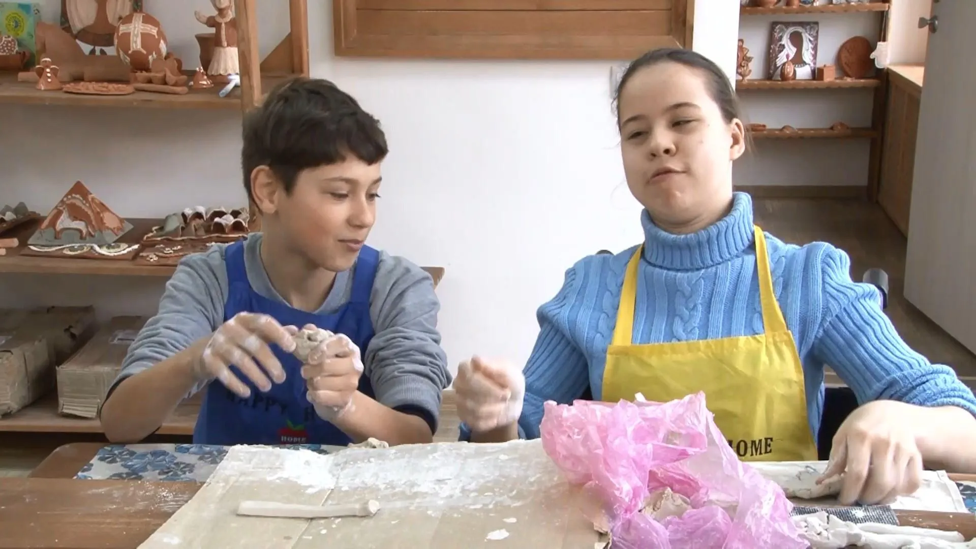 11-річний Богдан разом з подругою Настею роблять – гончарна команда, адже поодинці працювати з глиною важко.