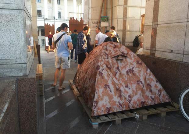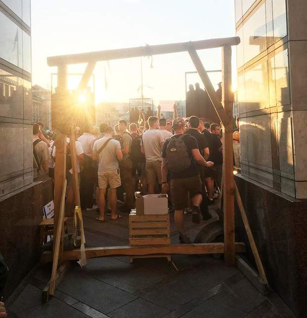 Під Стелою Незалежності встановили намет та символічну шибеницю.