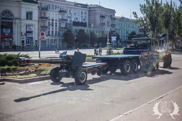 Користувачі соцмереж пишуть, що на похорон "комбрига" "Кальміуса" зігнали військову техніку і перекрили дороги. На саму церемонію прийшло чимало керівників терористичної "ДНР".