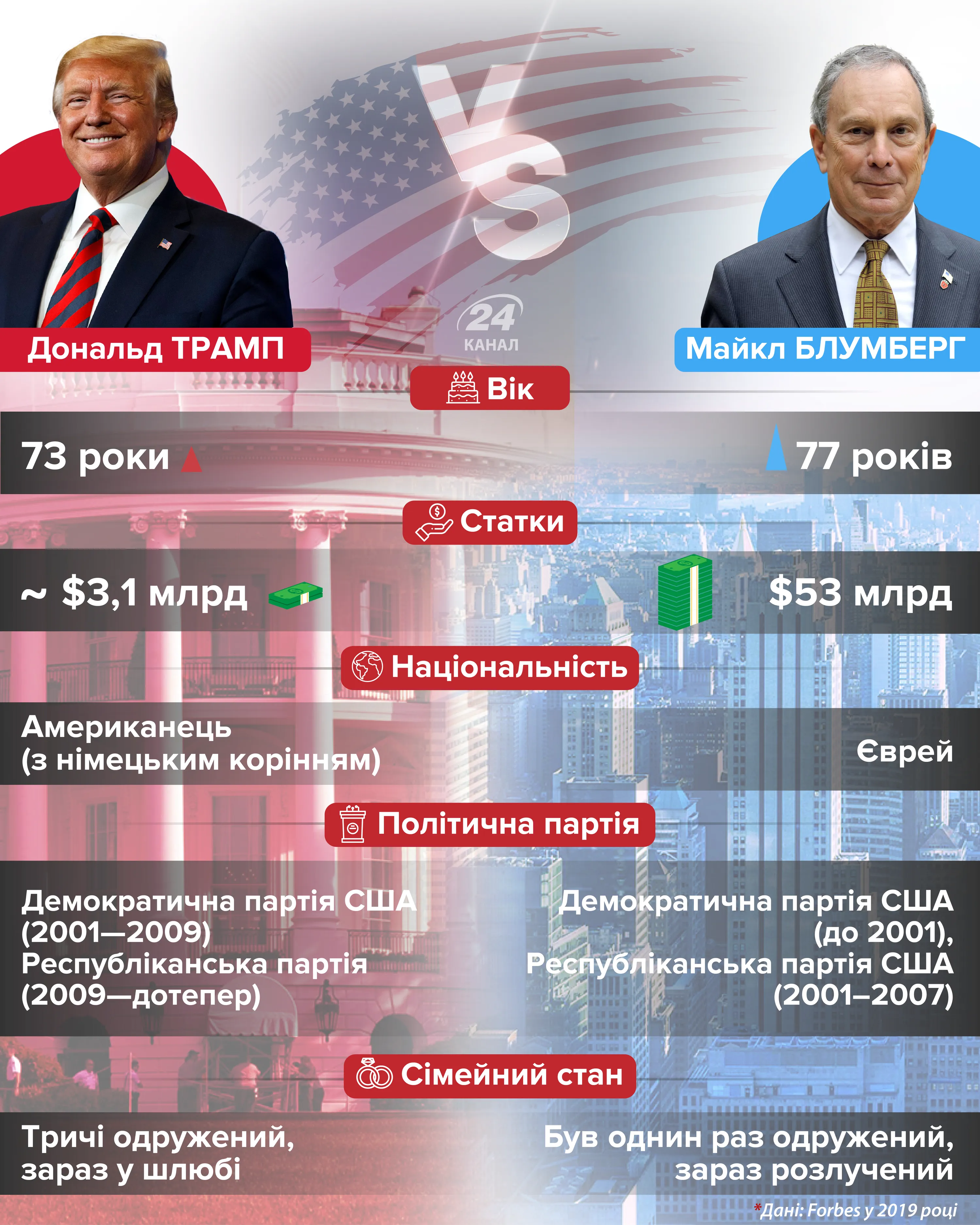 Дональд Трамп vs Майкл Блумберг / інфографіка 24 каналу