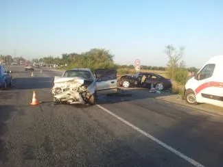 У міліції повідомили, що на 430 кілометрі автодороги Харків-Сімферополь лоб в лоб зіткнулися автомобілі Lanos і Mazda.