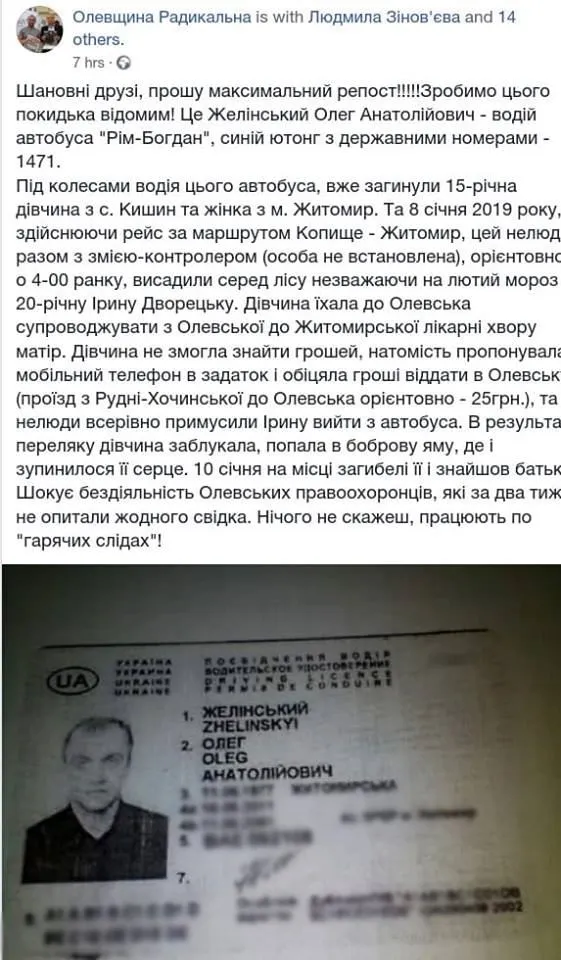 Водночас користувачі соцмереж розпочали власне розслідування та навіть опублікували дані про автобус і його водія. Так, ймовірне ім’я кермувальника – Олег Желінський. Кажуть, що виганяв він дівчину разом із кондуктором.