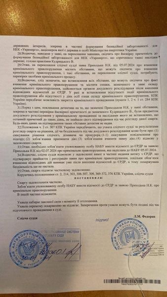 Через відсутність цих підтверджень слідча суддя постановила зобов'язати уповноважену особу НАБУ внести відомості до ЄРДР за заявою позивача про кримінальне правопорушення.