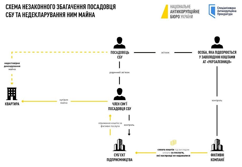 Обґрунтовуючи походження коштів, член сім'ї вказав, що заробив їх як ФОП – з лютого 2022 року він надавав юридичні та консалтингові послуги. Слідчі встановили, що на рахунки підприємця справді надходили гроші за нібито такі послуги – але від особи, яку підозрюють у заволодінні коштами АТ "Укрзалізниця" у складі злочинної організованої групи, а також від компаній, які контролюються зазначеною особою.