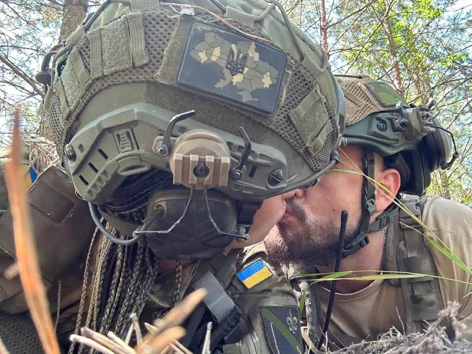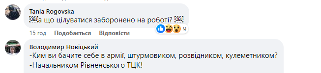 Це фото на підтримку військових з ТЦК, проти яких ведеться російськими ресурсами дискредитаційна кампанія, аби зірвати мобілізацію та швидше нас окупувати через нестачу особового складу. І ви в ТЦК теж цілуйтесь більше – і більше присилайте толкових копачів бліндажів. Свободу любові на війні, так би мовити,