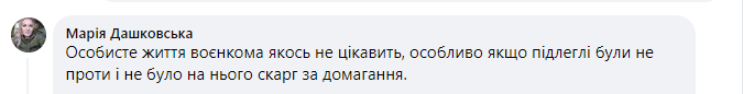 Згодом військова опублікувала ще один допис. Після того, як коментарях під її дописом з'явилося багато гнівних коментарів, Чорногуз закликала не лізти в чуже особисте життя й не принижувати людину за це публічно.