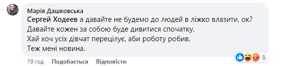 "Слухайте, вам більше нема що робити, аніж лізти в чиєсь особисте життя і принижувати за це людину публічно? Чи до вас не доходить, якби цей чоловік не був службовцем ТЦК, а був, приміром, залізничником, який цілував трьох провідниць - то новини узагалі не було б. Бо проти залізничників, на відміну від ТЦК, не проводиться дискредитаційна кампанія російськими ресурсами. (Укрзалізниця, це умовний приклад, я вас дуже люблю)", – додала Чорногуз.
