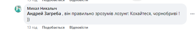- "Він правильно зрозумів лозунг: Кохайтеся, чорнобриві!";