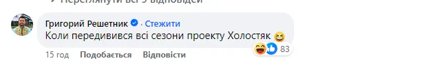 До слова, з гумором на інцидент відреагував і телеведучий Григорій Решетнік. У різних дописах він залишив коментарі, що чоловік "просто передивився "Холостяк"" та додав – якщо його звільнять, "то запросять на новий сезон".