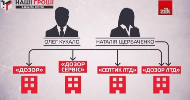 В списку є мережа компаній "Дозор", власником якої є Олег Кукало. І саме в "Дозор ЛТД", за даними "Наших грошей", була оформлена і дружина діючого керівника департаменту ДСНС Олександра Щербаченка – Наталія Щербаченко. Власних компаній з пожежного спостереження дружина посадовця не має.