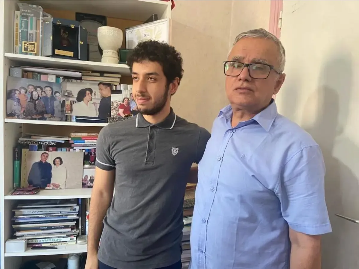 Алі Рахмані й Тагі Рахмані, син і чоловік Наргес Мохаммаді, стоять біля сімейних фотографій у своїй паризькій квартирі невдовзі після оголошення Нобелівської премії / фото Джульєтти Герон-Габріель / The New York Times