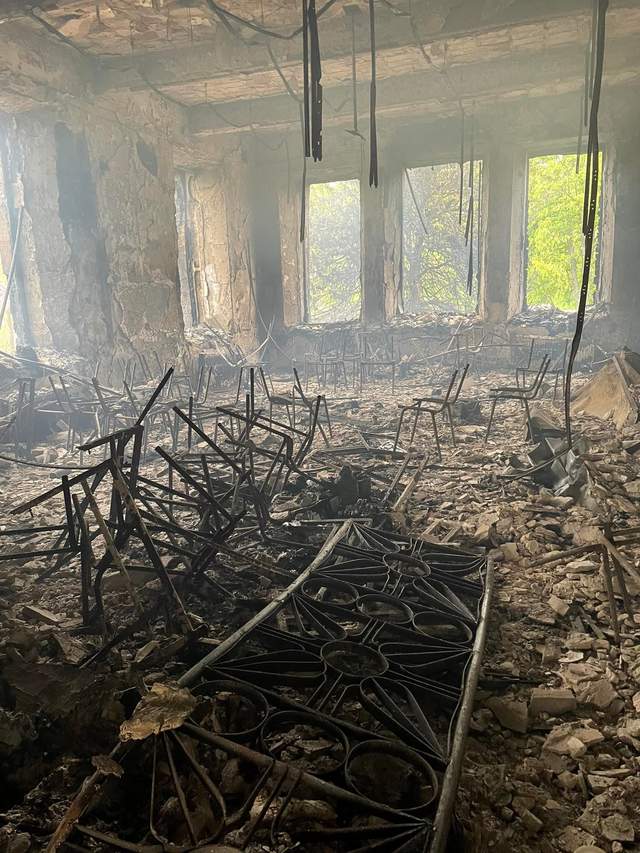 Наші школи – це пусті цегляні коробки, через розбиті вікна дме вітер, запах згарища, замість парт – лише металеві основи… на вцілілих дошках застигло 23 лютого,