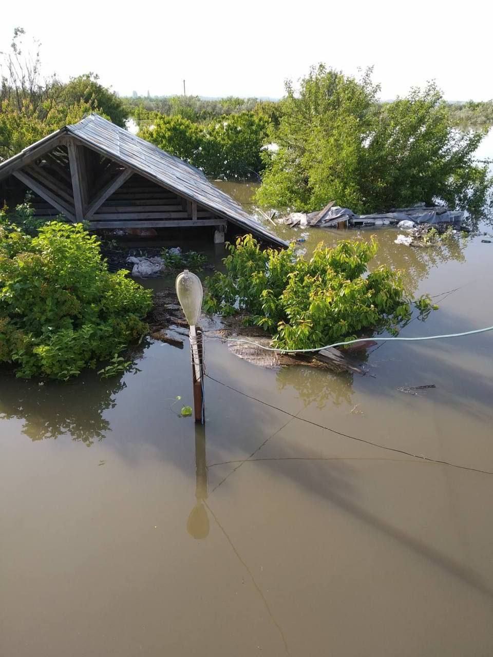 Тетяна Гасаненко повідомила, що станом на 14:00 середи в Олешках над рівнем води залишилося лише 20% міста. Однак є населені пункти, яким пощастило ще менше, і вони під воду пішли повністю.