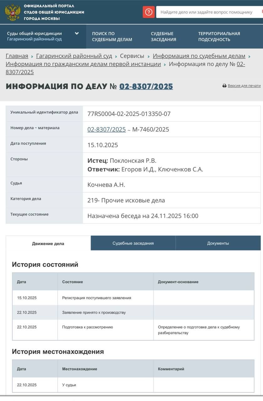 Днями блогеру надійшов позов від Поклонської через цю публікацію. Жінка заявляє, що ролик був фейковим, його створив штучний інтелект. Та Єгоров звернув увагу, що ім'я позивача – Радведа Поклонська, а не Наталя. І розповів про це в телеграм-каналі.