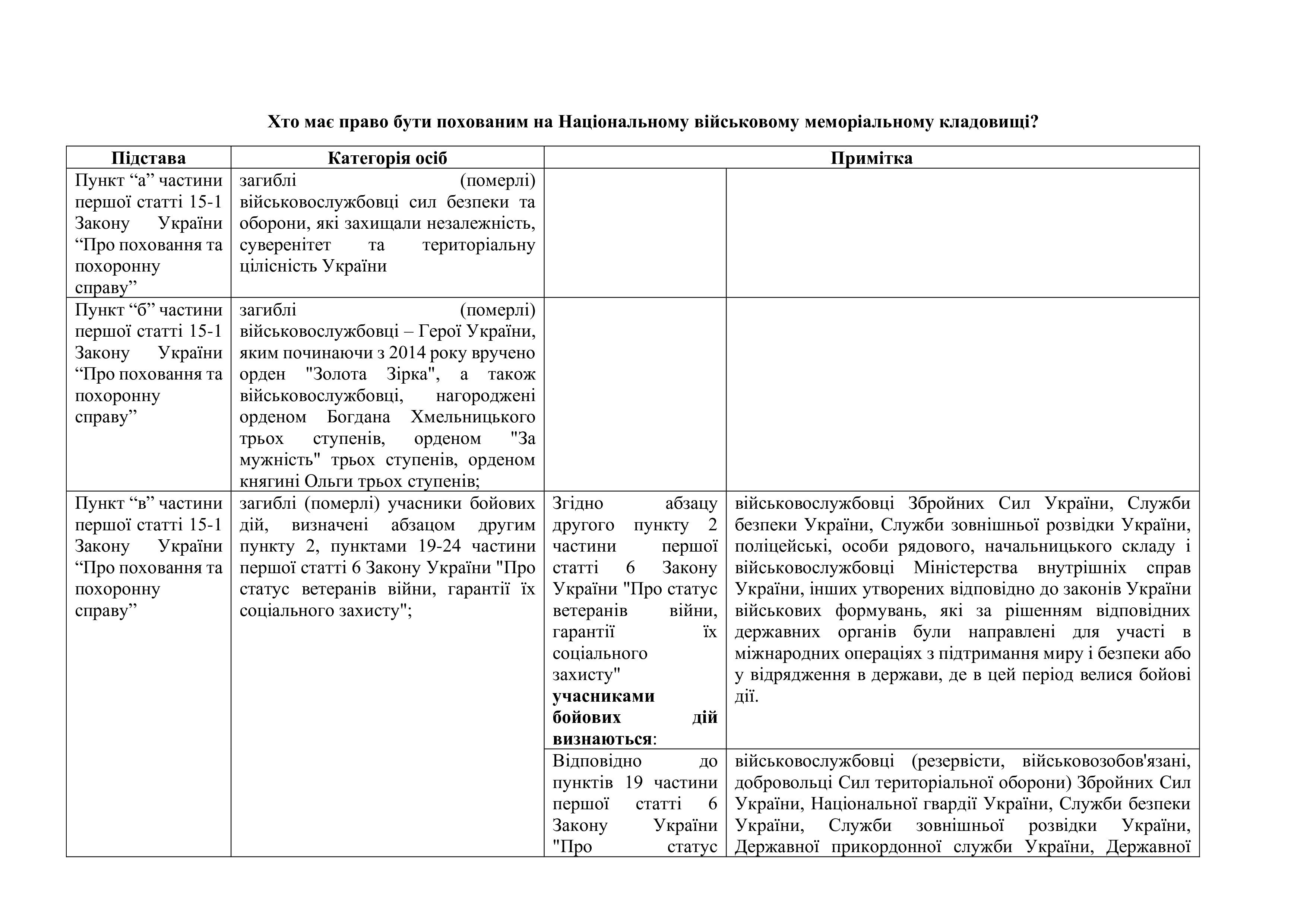 Хто має право бути похованим на Національному військовому меморіальному кладовищі: