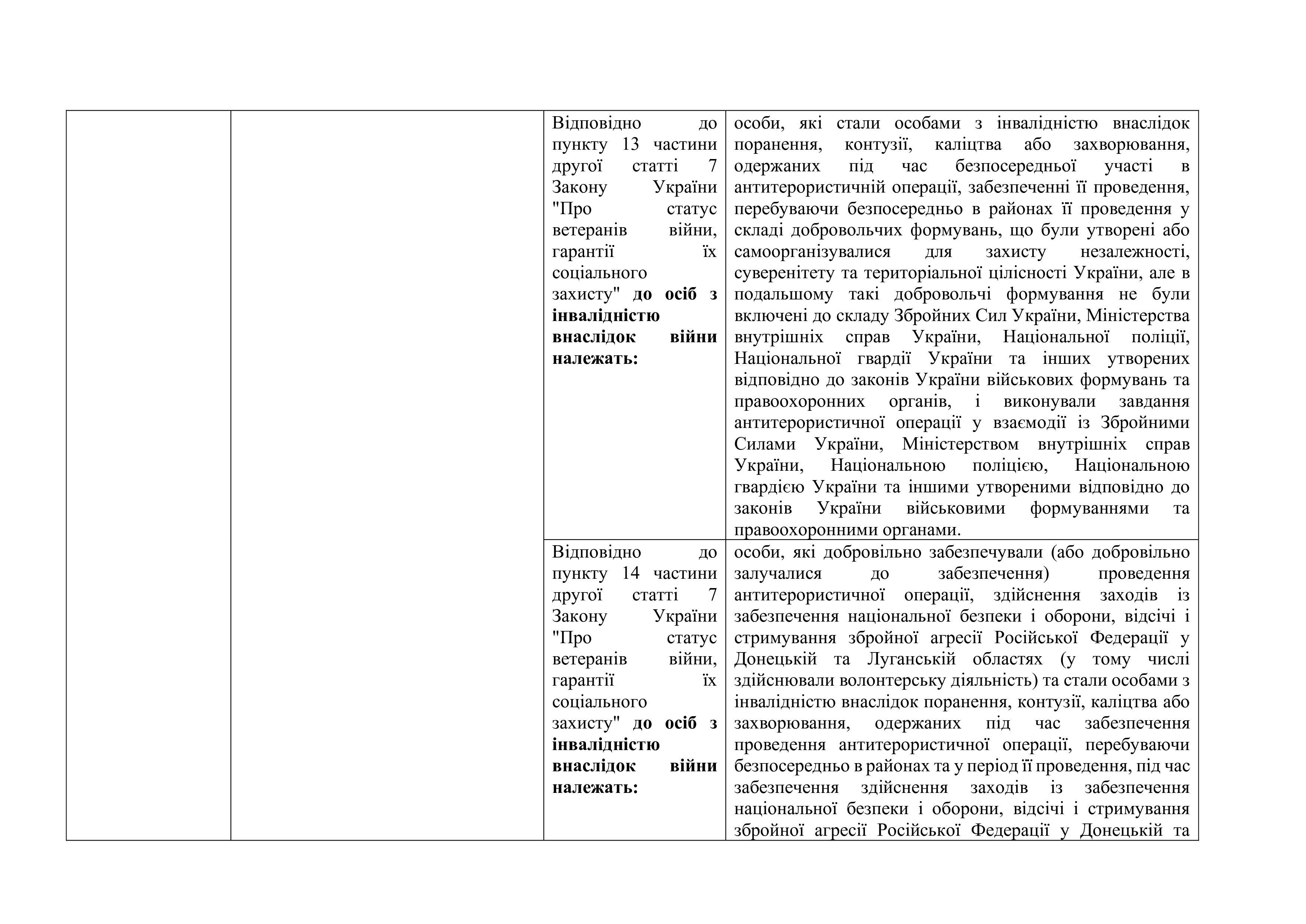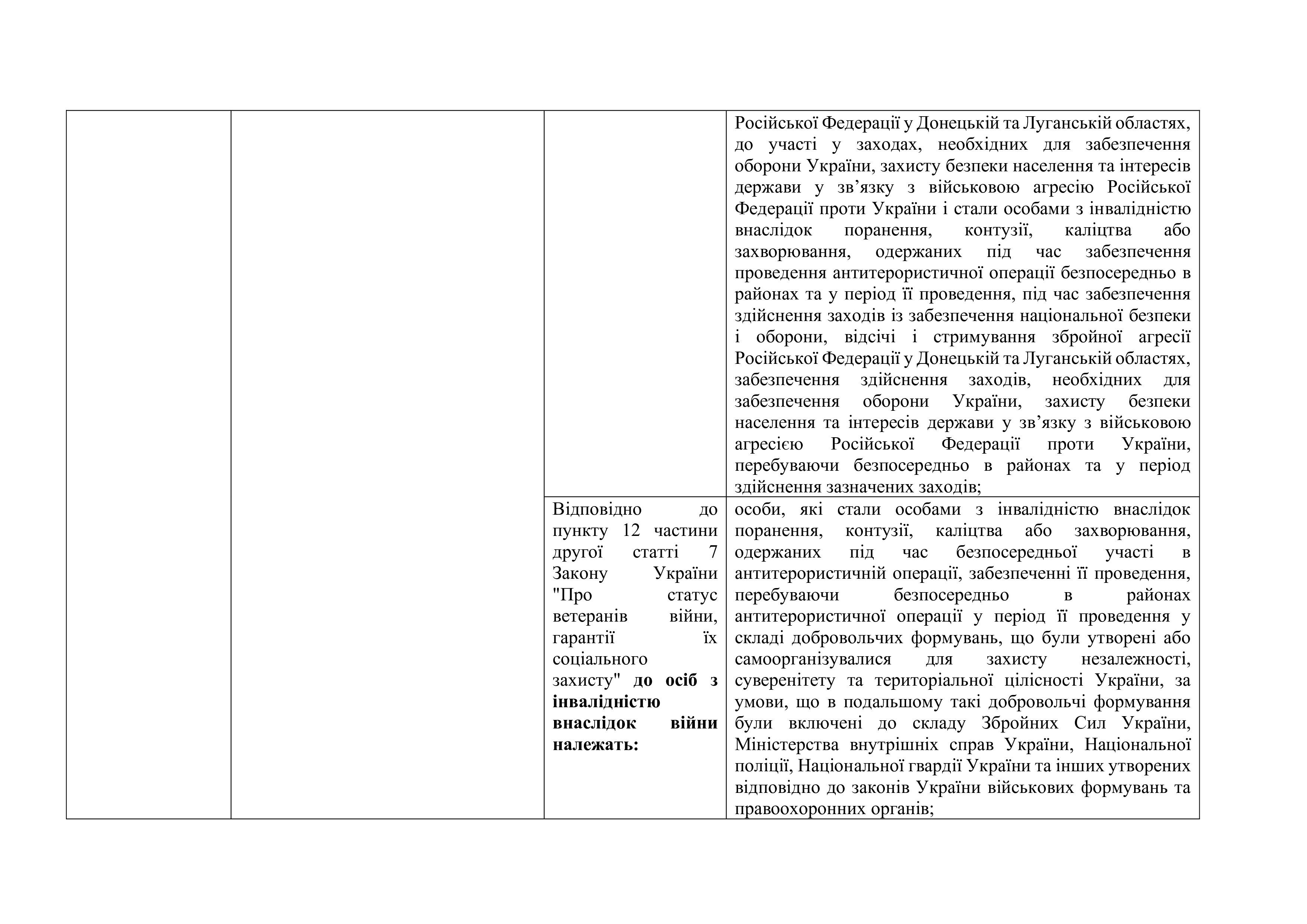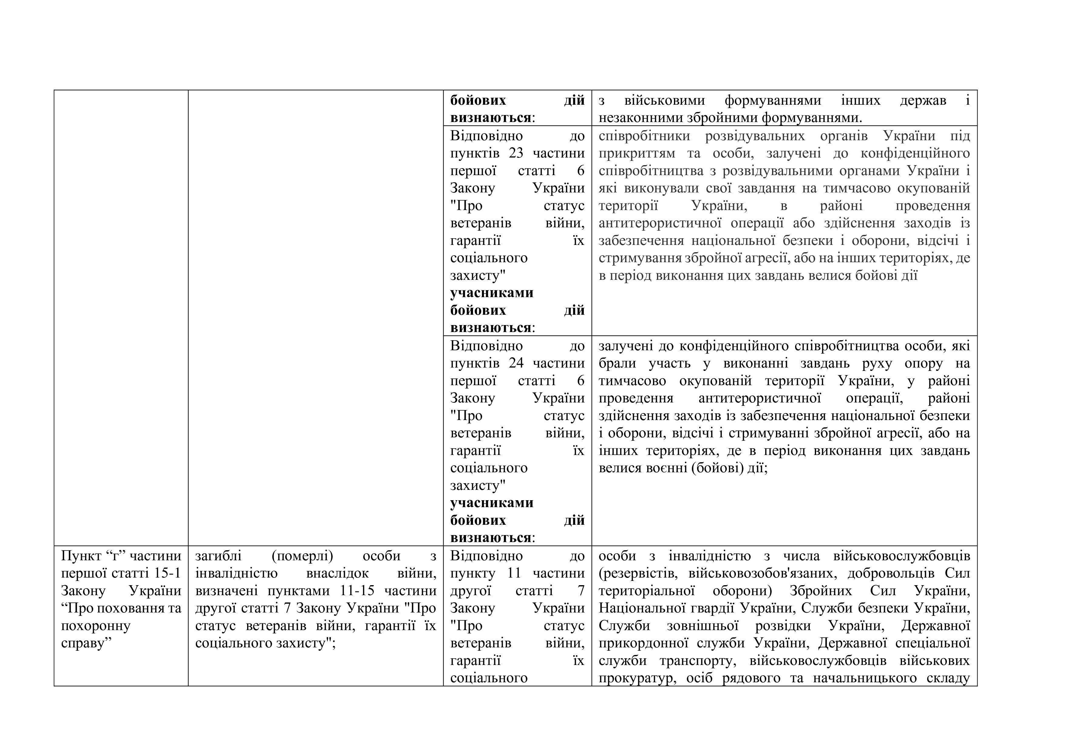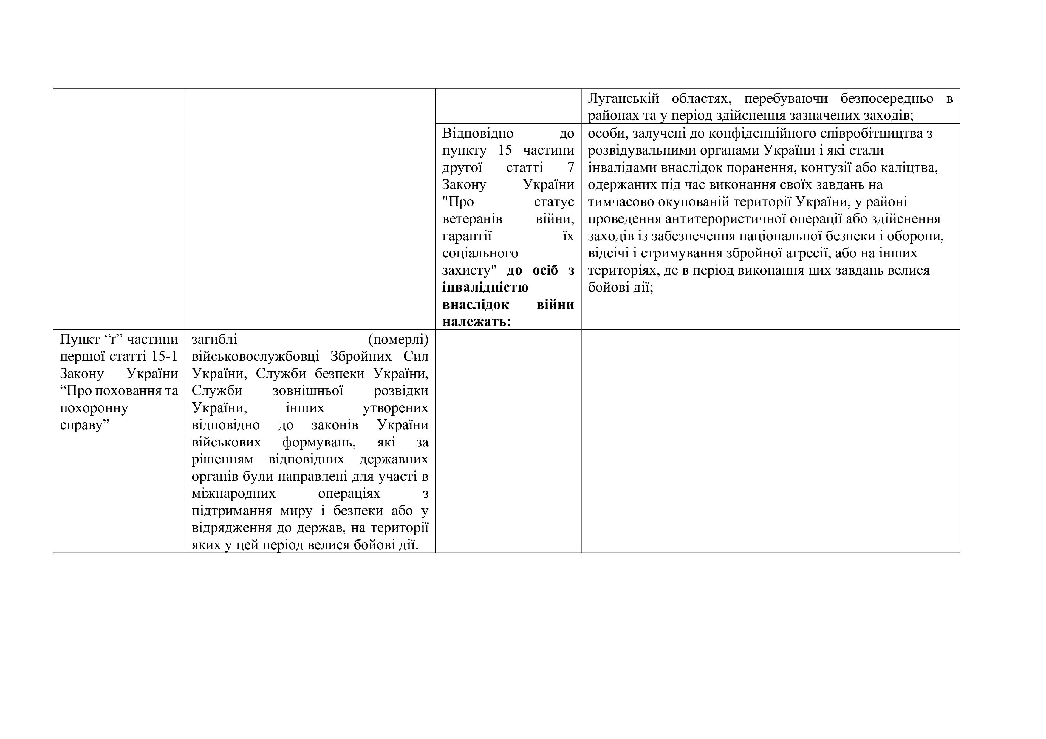 Щодо ветеранів війни, то на Національному військовому меморіальному кладовищі ховатимуть учасників бойових дій, зокрема, АТО, ООС, повномасштабної війни Росії проти України. Окрім того, осіб з інвалідністю внаслідок війни.