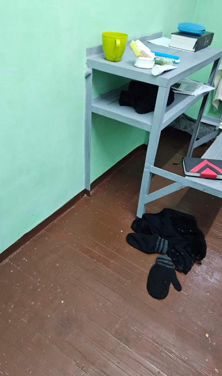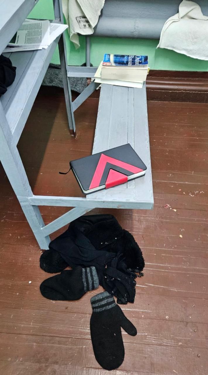 На опублікованих кадрах видно стіл зі лавою, на якому лежать особисті речі Навального. На забрудненій блювотними масами підлозі – шапка і рукавиці.