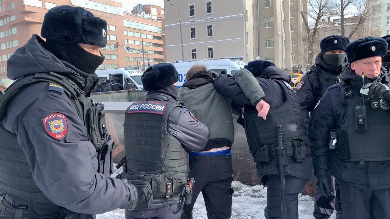 Станом на зараз відомо про затримання щонайменше 340 росіян, з яких понад 270 – затримали сьогодні, 17 лютого. Найбільше росіян затримали у Санкт-Петербурзі – близько 130 осіб. Як пишуть опозиційні росЗМІ, до деяких відділків навіть не хотіли пускати адвокатів. Затриманих лупцюють палицями, б'ють електрошокерами, хоча затримані не дуже й пручалися. Здебільшого затриманих росіян звинувачують у "непокорі законним вимогам співробітників поліції". Окрім того, на деяких, найбільш активних протестувальників, складають протоколи за "дискредитацію збройних сил Росії".