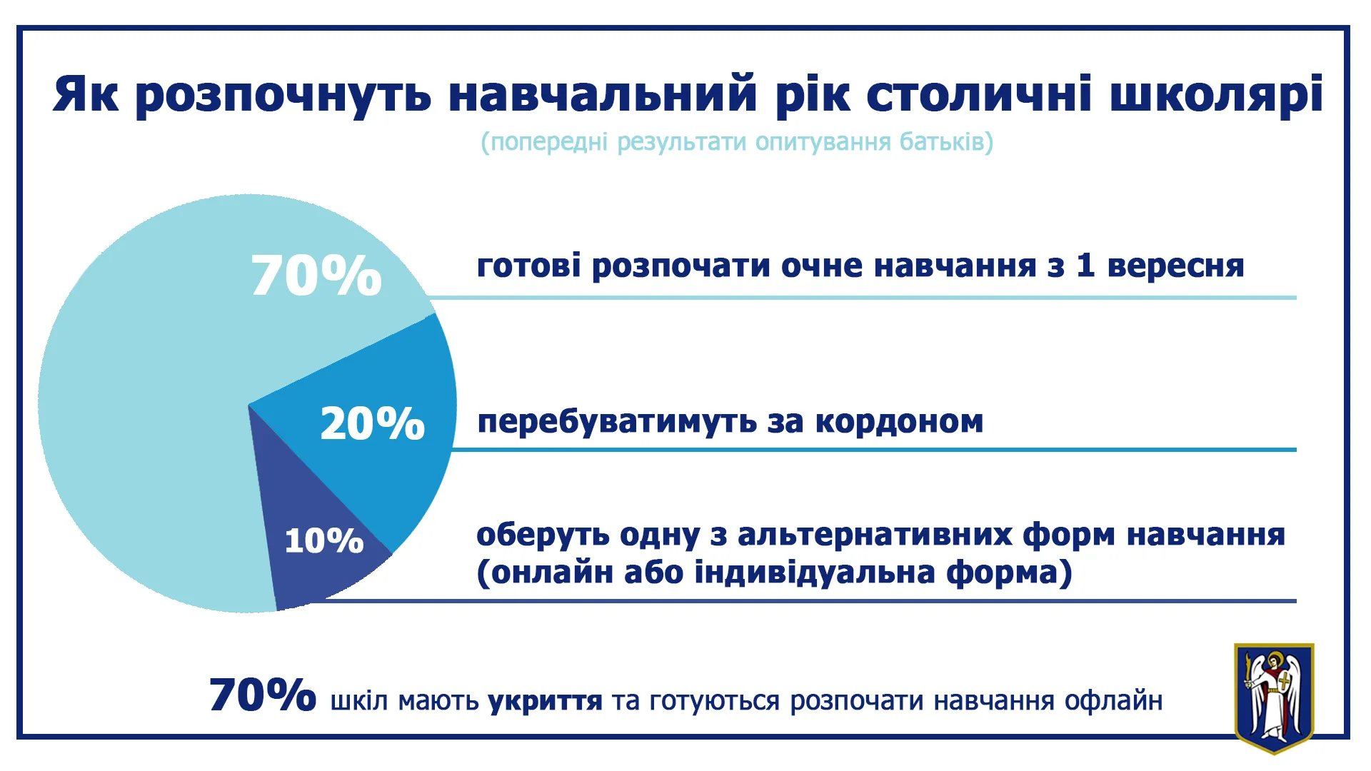 Станом на 1 серпня, вибір на користь очного навчання зробили 70% батьків.