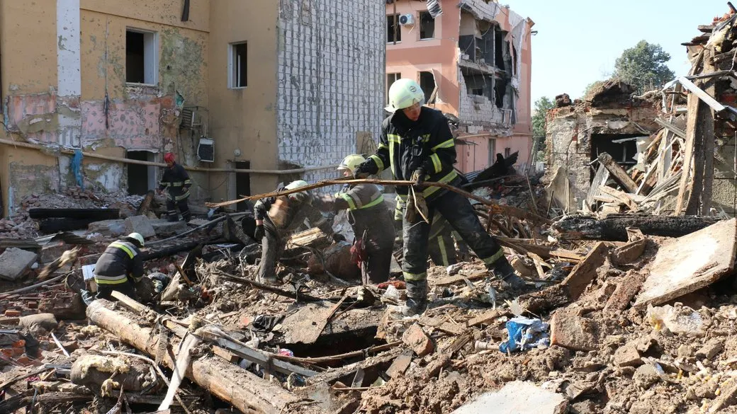 Харків, рятувальники розбирають завали гуртожитку у Салтівському районі, 18 серпня 2022 року / фото ДСНС Харківщини