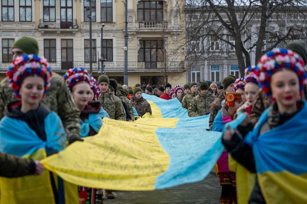 У центрі Львова розгорнули найбільший стяг / фото Львівської ОВА