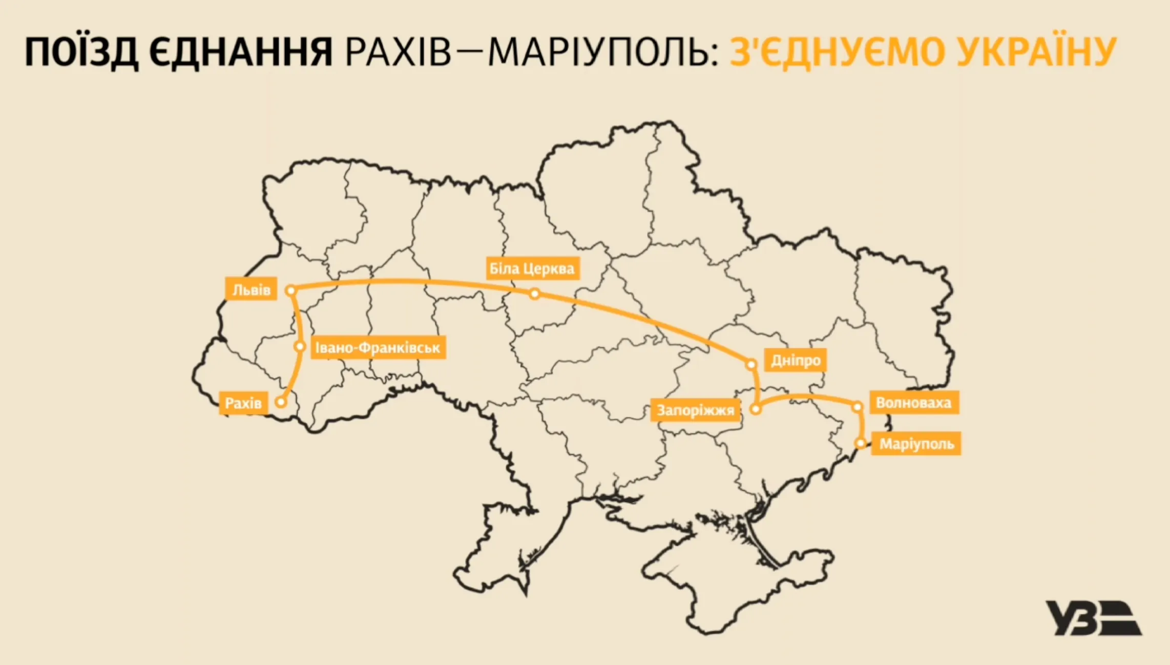 Маршрут потяга Рахів – Маріуполь / Ілюстрація УЗ