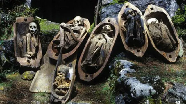 Тут можна побачити незвичайні похоронні споруди з трун, розміщених на скелях. Серед корінного населення існує повір'я, що, чим вище буде поховано тіло померлого, тим його душа буде ближче до небес.