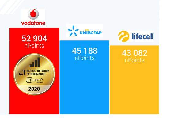 Тестування проводилося в мережах 2G/3G/4G. В результаті Vodafone показав найкращий результат майже за всіма показниками та отримав найвищу кількість балів – 52904.