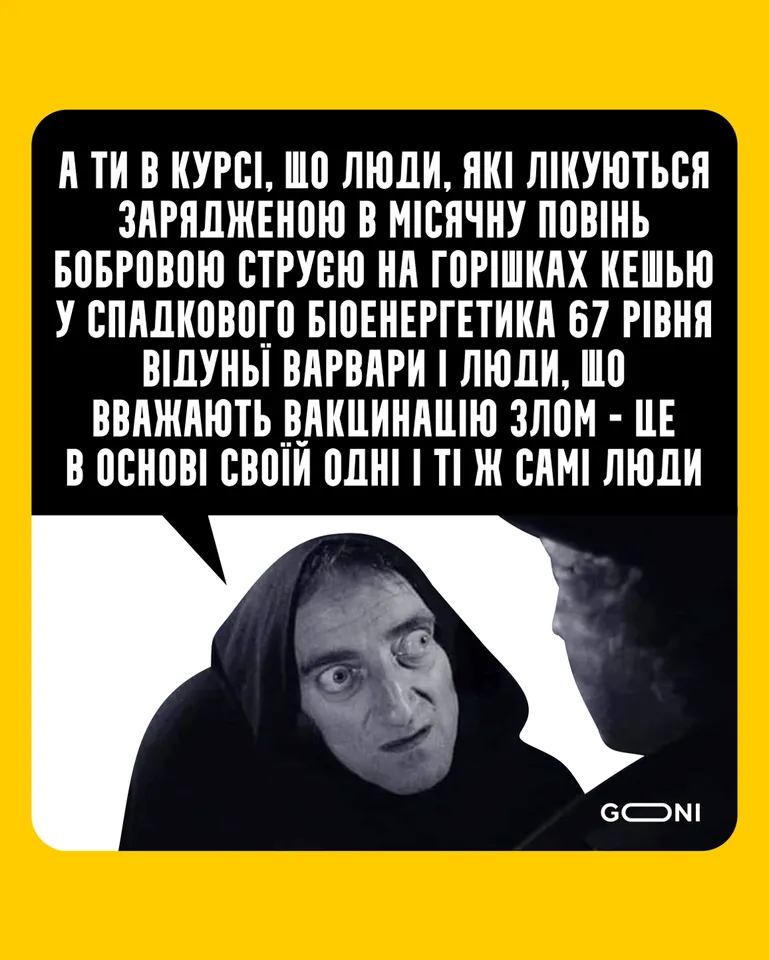 Попри стрімке збільшення хворих на COVID-19 в Україні, є чимала кількість людей, які виступають проти вакцинації. Часом їхні доводи звучать абсурдно. Але завдяки жартам, навіть найабсурдніші ситуації можуть викликати посмішку.