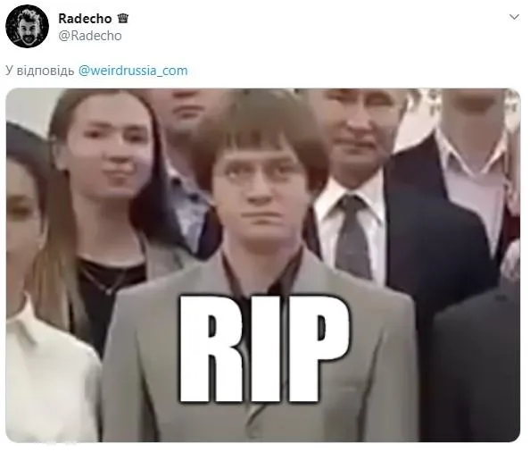 Один хлопець став просто перед лідером Росії і перекрив його на фото через свій високий зріст. Тоді якийсь чоловік швиденько відтягнув юнака вбік, щоб той "не псував" кадр і не закривав собою Путіна.