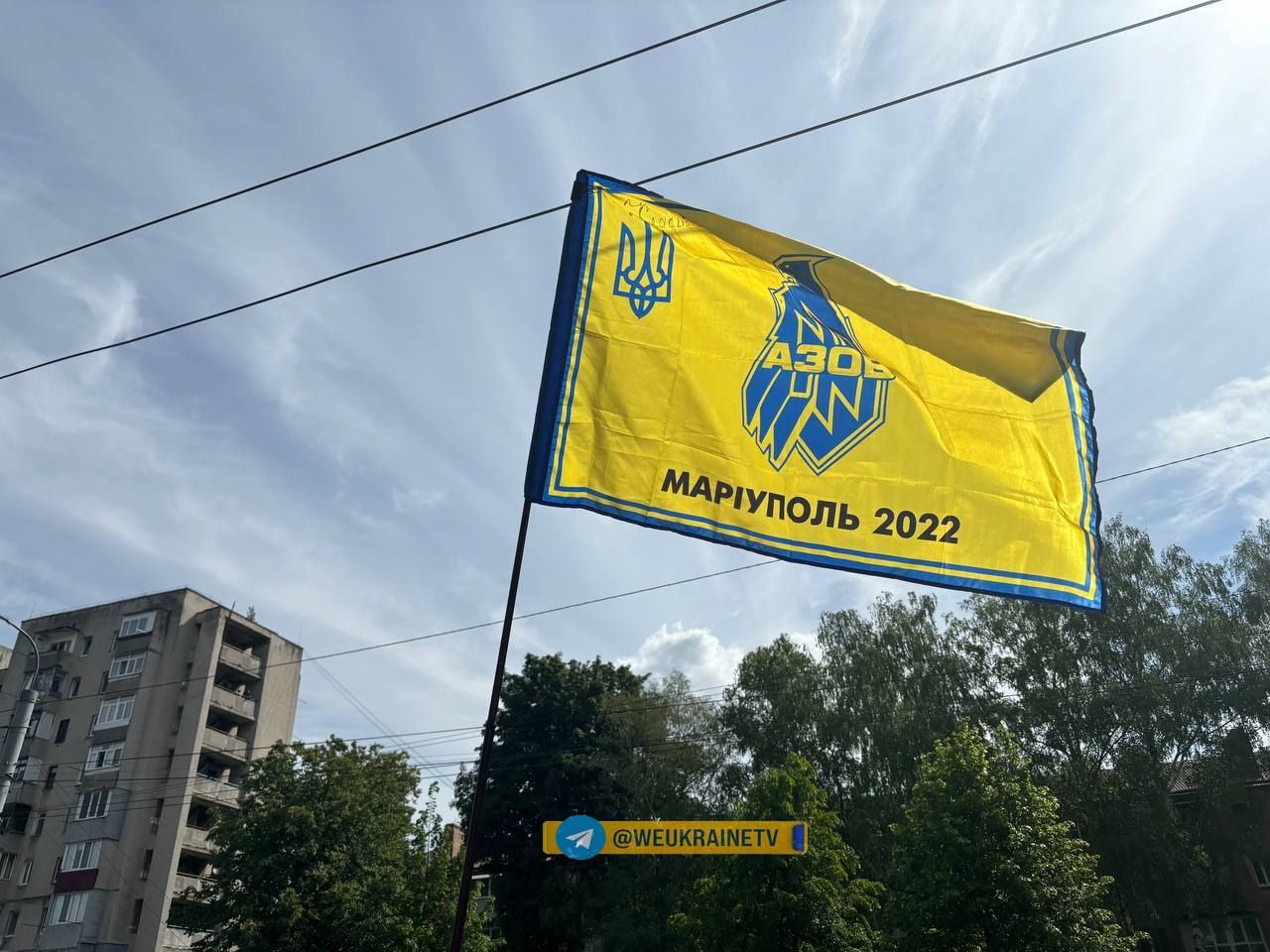 Зокрема, у живому коридорі майоріли українські стяги, а також прапори "Азову". Також деякі принесли факели, щоб ушанувати героя.