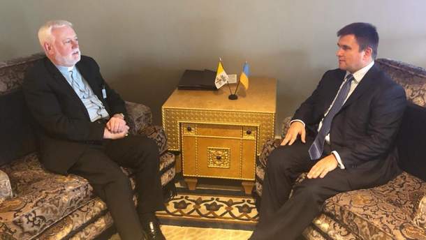 У прес-службі МЗС 25 вересня повідомили про зустріч Клімкіна з Секретарем з міждержавних відносин Святого Престолу Полом Річардом Галлахером в рамках 73-ї сесії Генасамблеї ООН.
