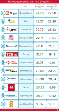 Потрапили до топ-25 і 4 новинні ресурси – obozrevatel.com (18 місце, 21,58%), tsn.ua (19 місце, 21,54%), 24tv.ua (23 місце, 20,22%) segodnya.ua (24 місце, 20,21%).