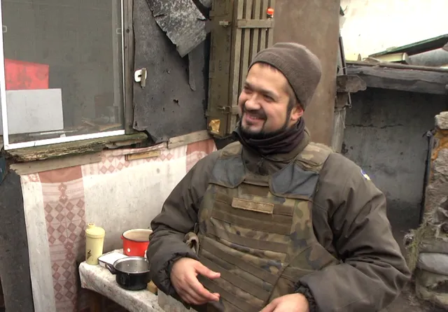 З Віталієм на псевдо "Естет" зустрічаємось вже не вперше, завжди приймає у себе на позиціях із щирою посмішкою і першим питанням, чи знімальна група буде каву. Він, як і Христина, "доволонтерився". Довго допомагав підрозділам, котрі стояли біля Донецького Аеропорту на відомій і дуже гарячій позиції "Зеніт". Коли вирішив піти воювати, підрозділ обирав за принципом "хто стоїть на "Зеніті". Тоді там перебувала гірсько-піхотна 128-ма бригада, тож до неї і мобілізувався.