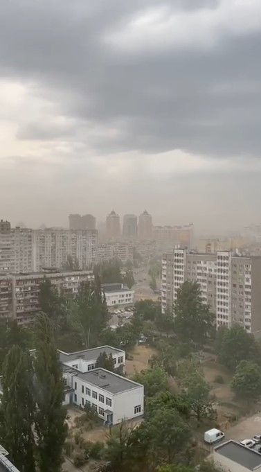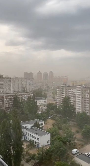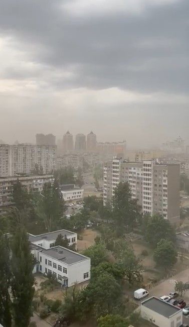 На деяких кадрах можна зауважити, як вітер несе над містом дошки від балкона.