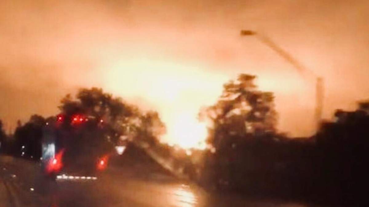 Справді, на фото та відео, знятих поблизу місця інциденту, видно, як у небо піднімається яскравий помаранчевий стовп вогню.