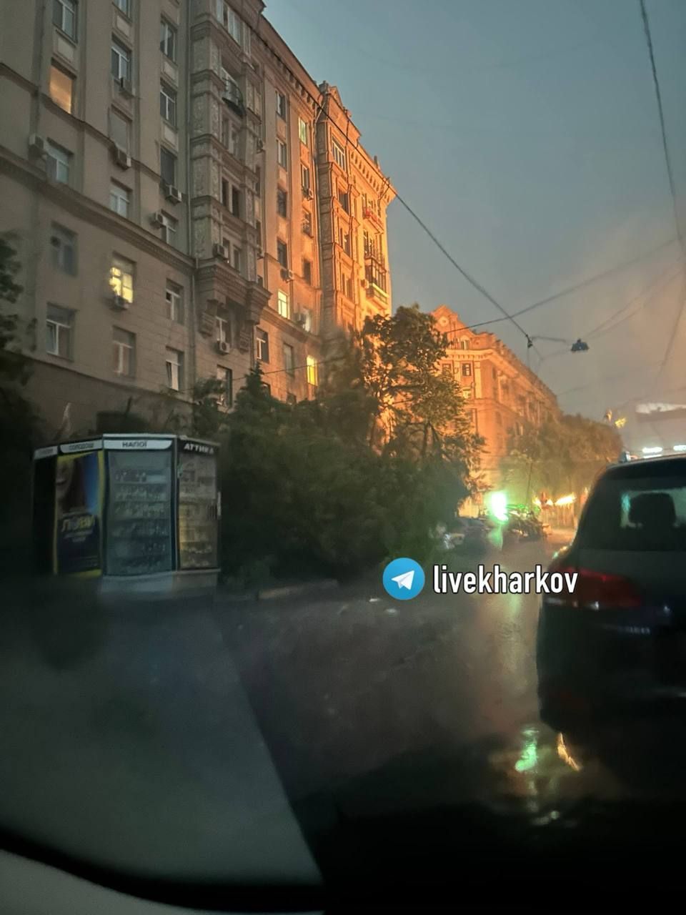 Через кілька хвилин місцеві телеграм-канали повідомили, що у Харкові почалися проблеми зі світлом у деяких районах. Очевидці повідомляли, що нібито блискавка вразила підстанцію.