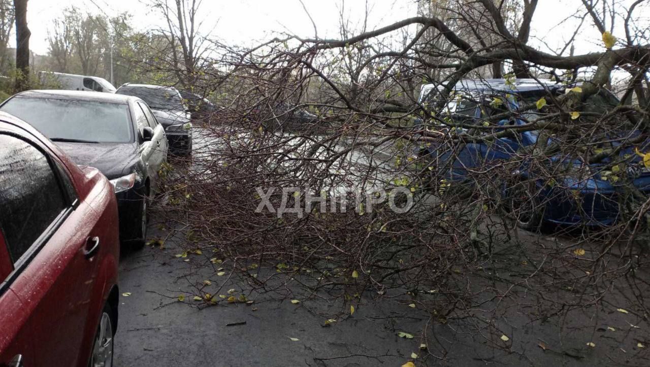 Дерева повалилися внаслідок вітру також і у Дніпрі. Зокрема, там на вулиці Гагаріна верба впала на припарковану автівку, пошкодивши її. Також гілка від дерева впала на вулиці Театральній у центрі.