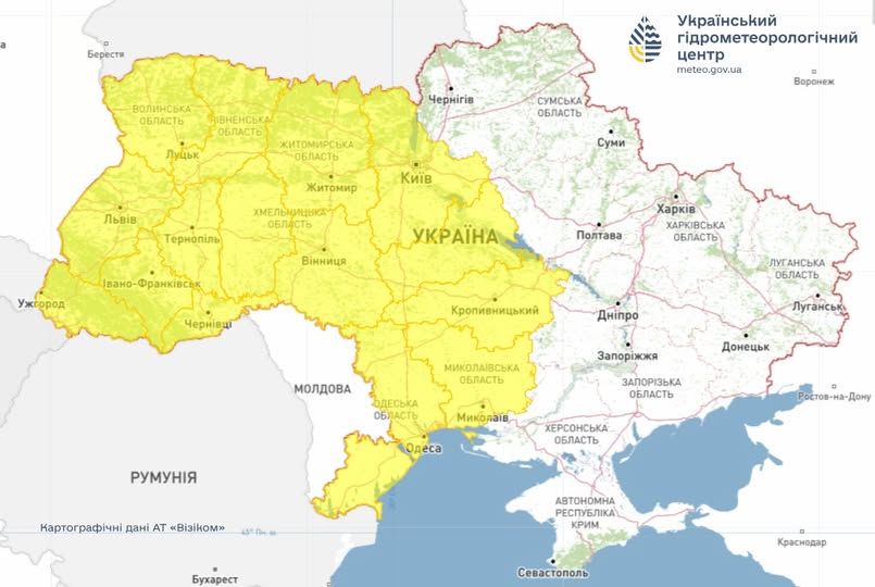Про це інформує 24 Канал з посиланням на попередження Укргідрометцентру.