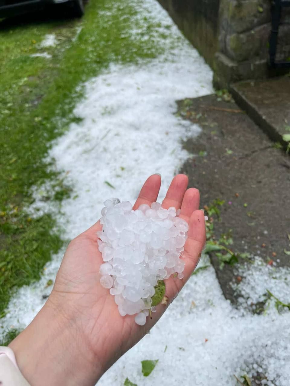 Подекуди град був розміром з м'яч для пінг-понгу. У регіоні негода також пообривала листя з дерев, дощ у регіоні ще триває.