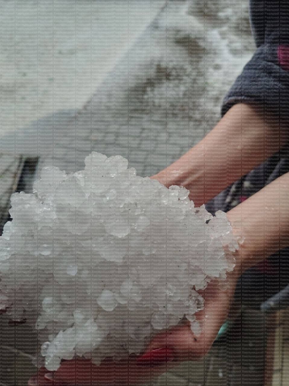 Який град випав у Хмельницькій області / Фото з місцевих телеграм-каналів