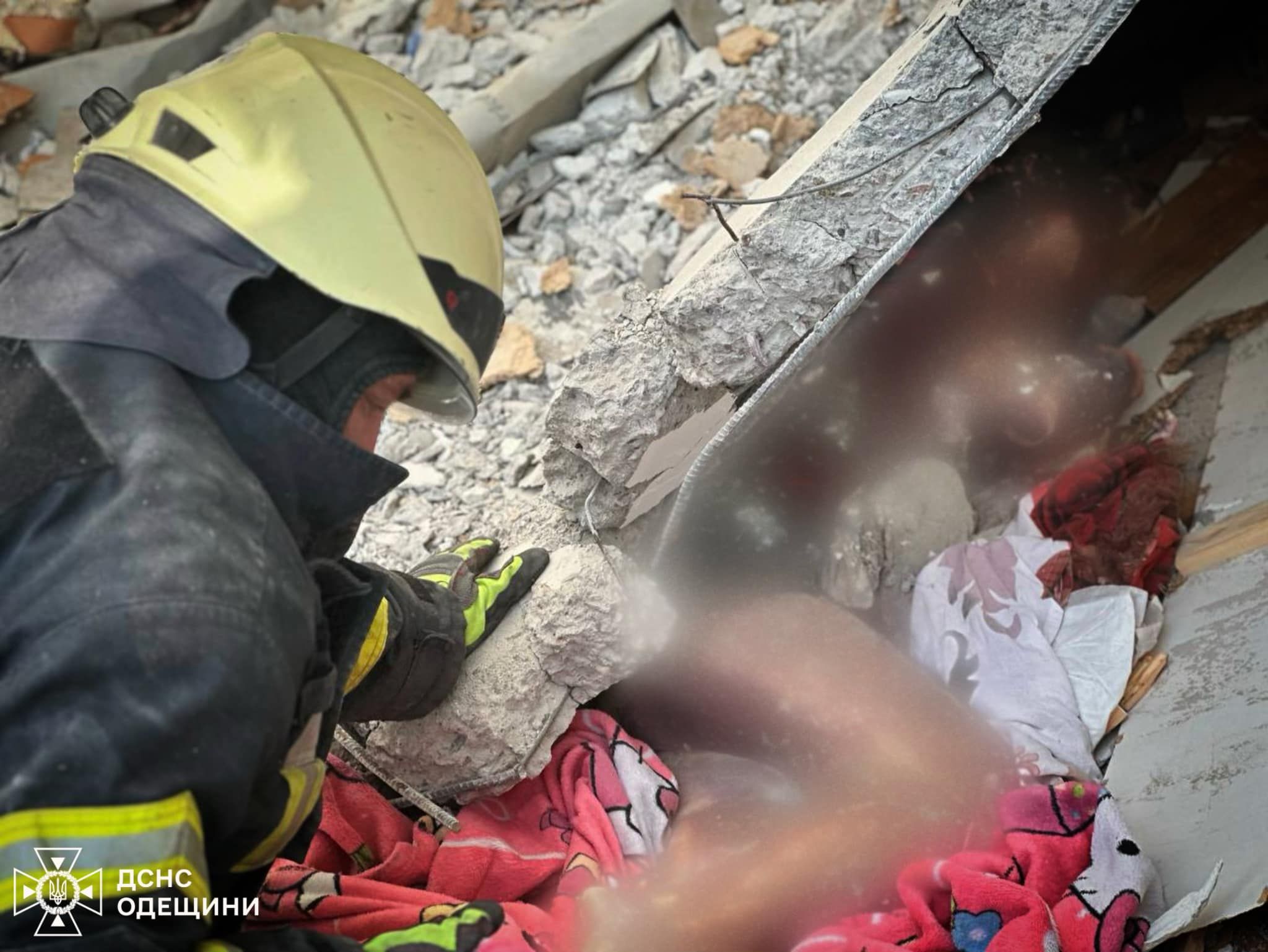 - О 20:54 рятувальники повідомили, що під завалами виявили тіло 8 жертви. Пошукова операція продовжується. В Одеській ОВА встановили інформацію про жертв російського терору.