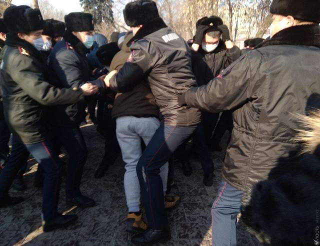 На площі Астана в Алмати силовики затримали практично всіх учасників протесту. За даними ЗМІ, мовиться про заборонений у країні рух "Демократичний вибір Казахстану". Його створив колишній банкір-утікач Мухтар Аблязов. Раніше в соціальних мережах той закликав своїх прихильників вийти 10 січня на мітинги у великих містах Казахстану.