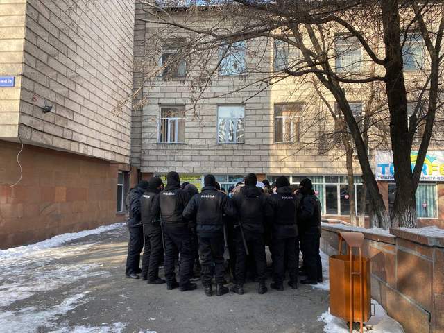 Дії казахстанських поліцейських щодо мітингувальникі / Фото видання "Vласть" і з соцмереж