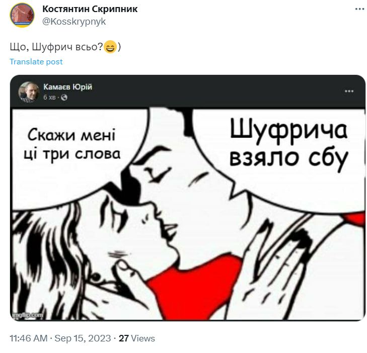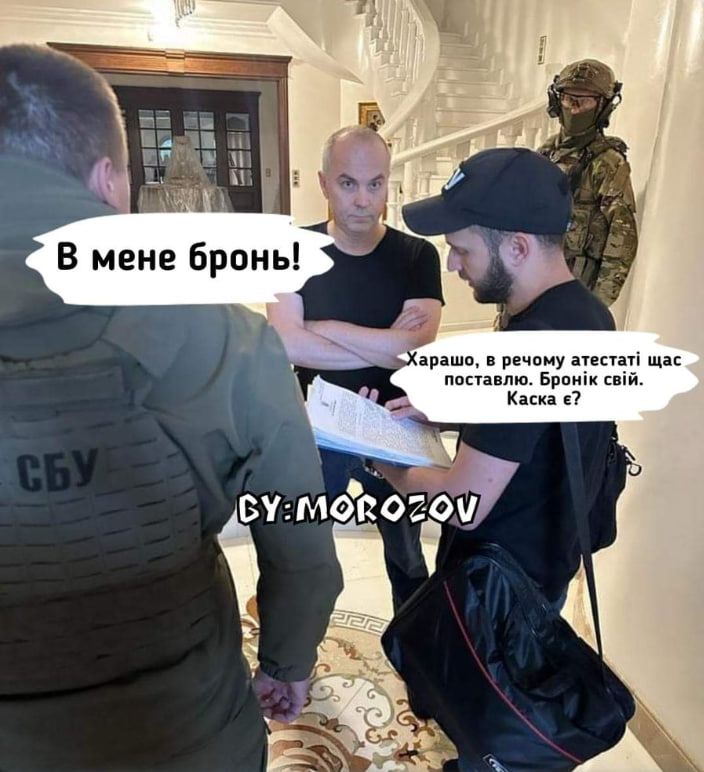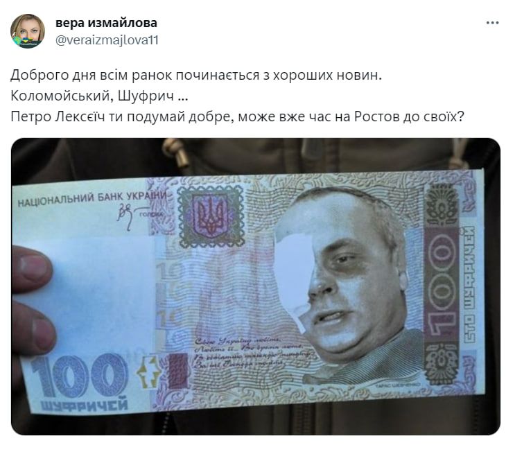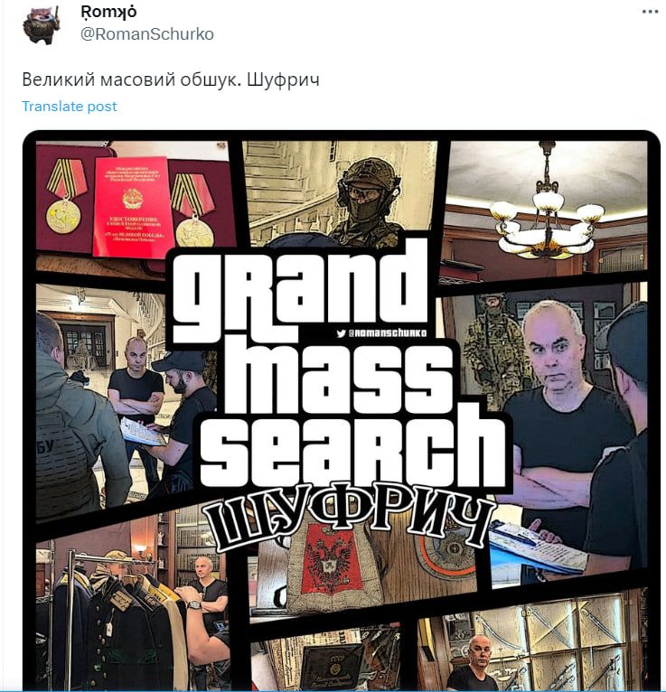 Також користувачі соцмереж пригадали нещодавні обшуки у Ігора Коломойського та навіть порівняли їх із тими, які відбувалися у Шуфрича 15 вересня. Ймовірно, автор мему хотів наголосити на схожості того, як Коломойський та Шуфрич приймали правоохоронців у себе вдома. Також, безумовно, мовиться про резонансність справи.
